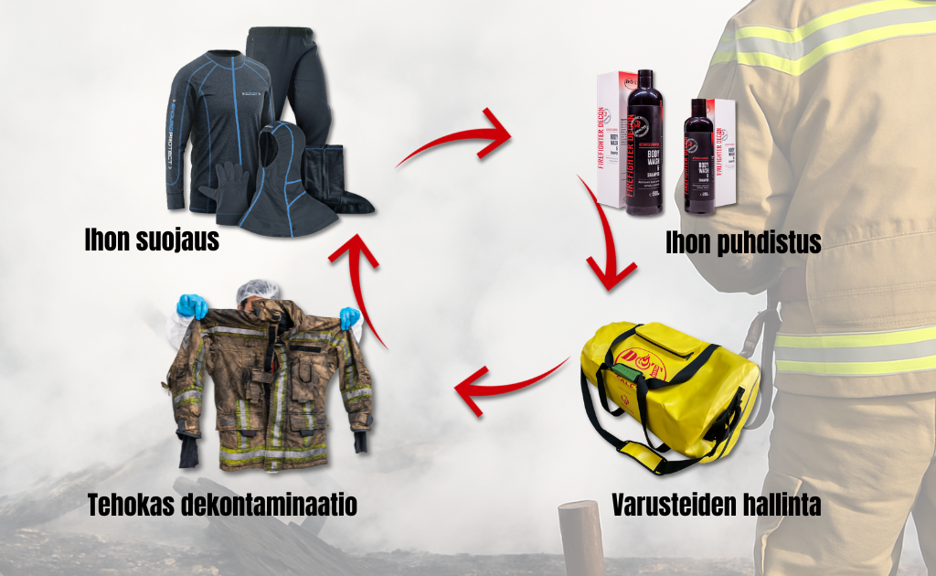 Sammutusasut ja muut suojavarusteet keräävät tehtävissä suuria määriä haitallisia yhdisteitä. Ilman tehokasta dekontaminaatiota nämä yhdisteet voivat vapautua uudelleen käytössä ja aiheuttaa jatkuvaa altistumista.