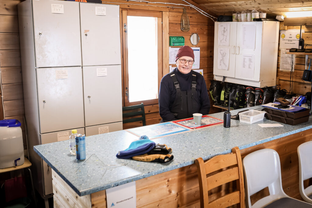 Laskettelukeskus Tahkon ski patrol Mikko Leppäharju on ollut jo pari tuntia työvuorossa, kun Pelastustiedon toimittaja saapuu Tahkon ensiapupisteelle.